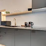 Zu den Annehmlichkeiten für Selbstversorger gehört eine Küchenzeile mit einem Kühlschrank. Die Bushaltestelle Szafarnia liegt in rund 300 Meter Entfernung von diesem Apartment.